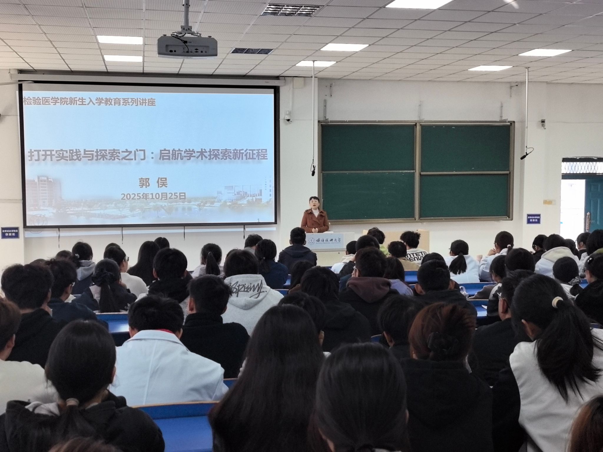 为帮助新生养成科研思维、了解学术前沿发展、掌握正确学习方法、树立远大科研志向、迅速融入大学生活,10月23日上午,检验医学院在G4教室开展2025级新生入学教育系列活动之学术科研专题讲座活动。邀请郭俣教授主讲。