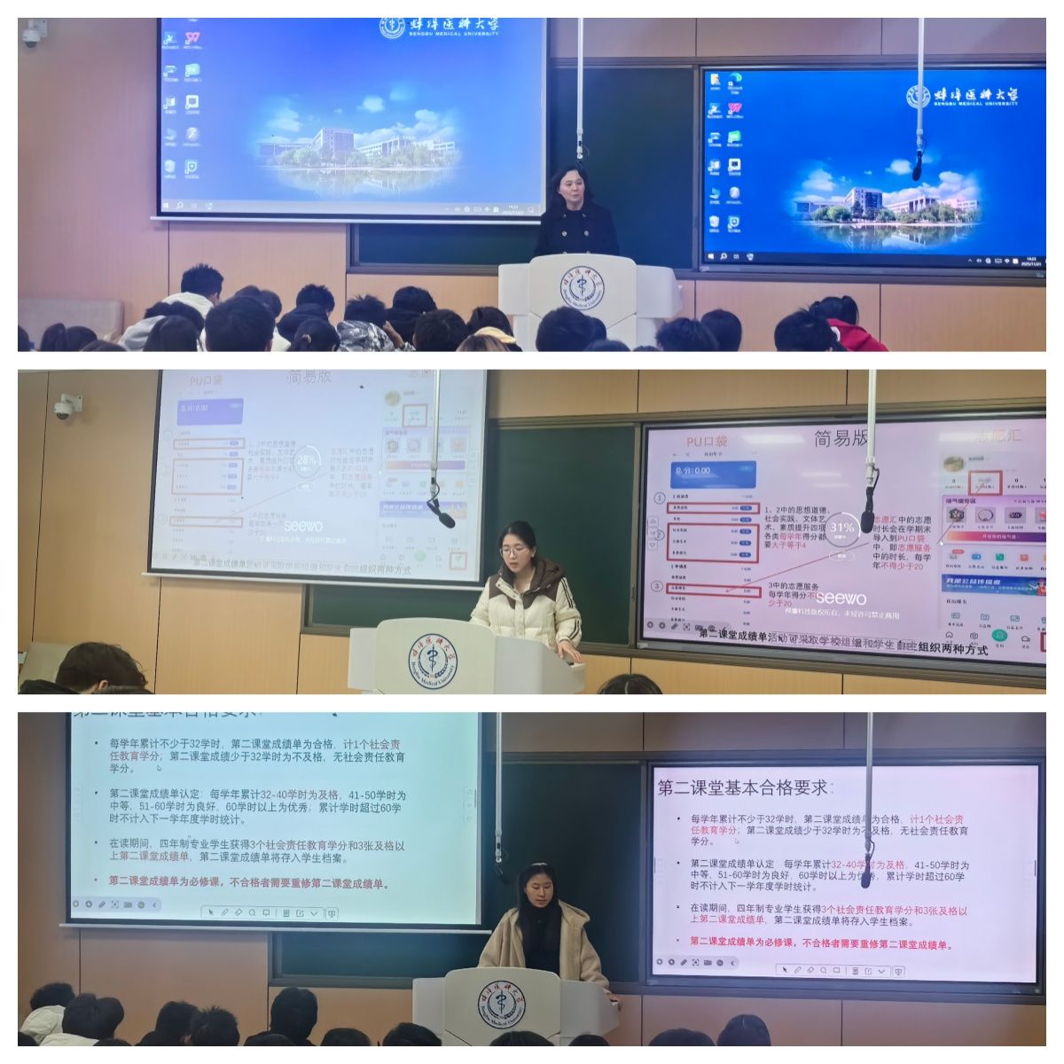 年级老师针对即将到来的考试月,结合专业特点给出详实的复习建议,强调合理规划时间、掌握高效学习方法的重要性;同时着重强调诚信考试的底线要求,引导新生树立"以诚信立身、以学识立足"的正确观念。在日常管理方面,年级老师对课堂纪律规范、寝室卫生及安全注意事项进行细致说明,要求新生严格遵守校规校纪,营造整洁安全的住宿环境和专注高效的学习氛围。此外,还针对医保政策的参保范围、报销流程、待遇标准等核心内容进行解读,帮助新生全面了解医疗保障权益,为健康校园生活筑牢基础。