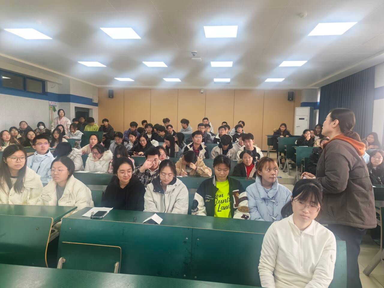 在献血人群与榜样故事分享环节,余站长指出,蚌埠市已形成“党政机关引领、企业职工参与、高校学子接力”的献血格局,其中高校是无偿献血的重要力量,我校等驻蚌高校累计献血超96万毫升。他讲述了志愿者袁淮18年捐献血小板313次、梅其焕20年献血162次的感人事迹,让同学们深刻体会到坚持与奉献的力量,激发了青年学子的责任担当。