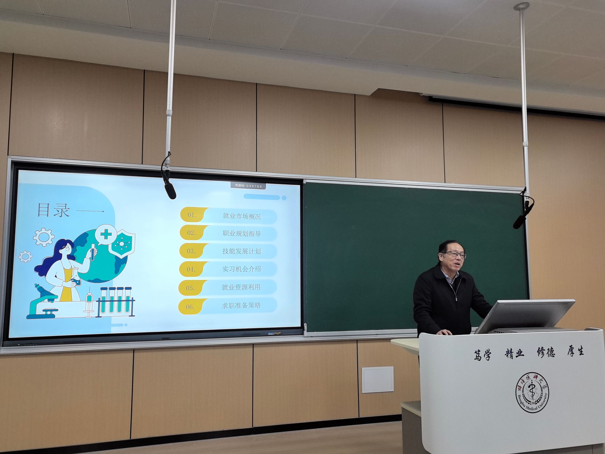 方强教授以就业展望与成长指引为主题,从就业市场概况、职业规划指导、技能发展计划、实习点介绍、就业资源利用及求职准备策略等方面入手,全面分析了医学检验技术及卫生检验与检疫专业的行业需求趋势与就业前景,为同学们规划大学学习生活、提升就业竞争力提供了清晰路径。他寄语新生,把握国家战略与行业蓝图,将个人理想融入健康中国大业,树立长远的职业目标,注重理论与实践相结合,不断提升自身综合素质,为未来的职业发展筑牢根基。
