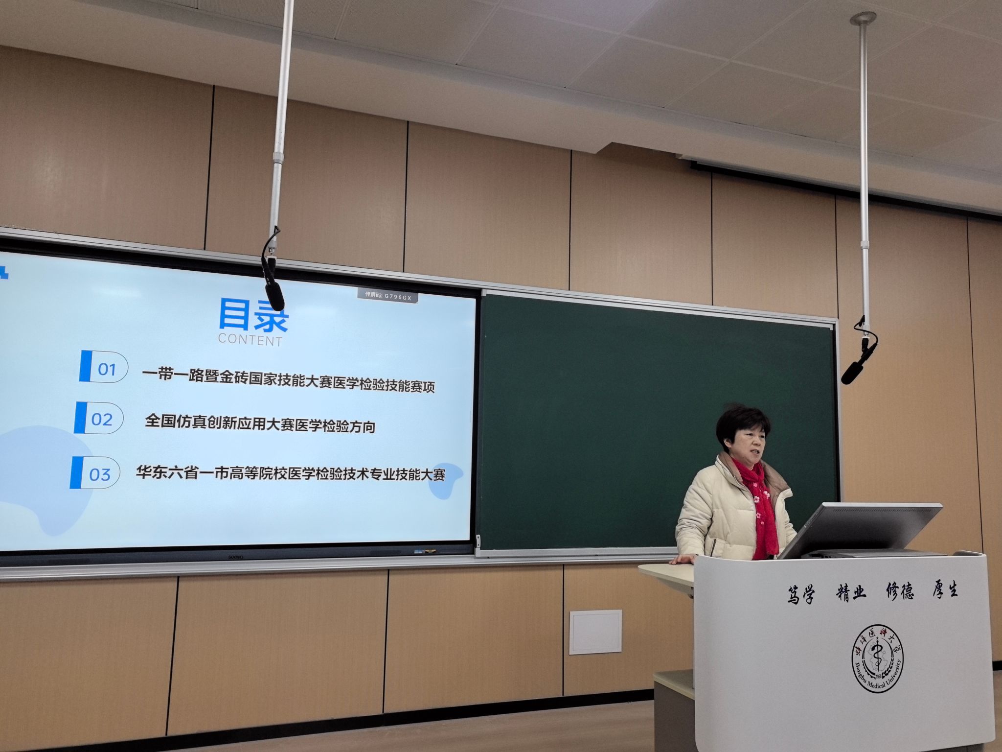 讲座伊始,杨清玲教授以学院发展为脉络,从历史沿革、师资队伍、学科建设、学位点建设、科学研究、人才培养模式及学生发展等多个维度展开讲解。她系统梳理了学院的发展历程与办学成果,详细介绍了学院雄厚的师资力量与扎实的学科基础,深入阐释了特色人才培养模式,鼓励新生们珍惜学习机会,夯实专业基础,在检验医学领域找准定位、深耕细作。