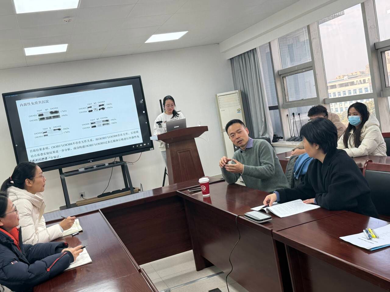 在交流过程中,卫功宏教授与研究生及青年教师进行了分组座谈和个别指导。目前指导的研究生对课题进展和存在的困难进行了汇报,卫老师对后续研究和成果凝练进行了指导;实验室研究生围绕课题中遇到的技术瓶颈、实验设计优化、数据分析方法等问题进行了请教。卫教授结合自身科研经验,从问题本质、解决路径与创新潜力等角度给予了细致而富有启发性的建议,为学生厘清了研究思路。