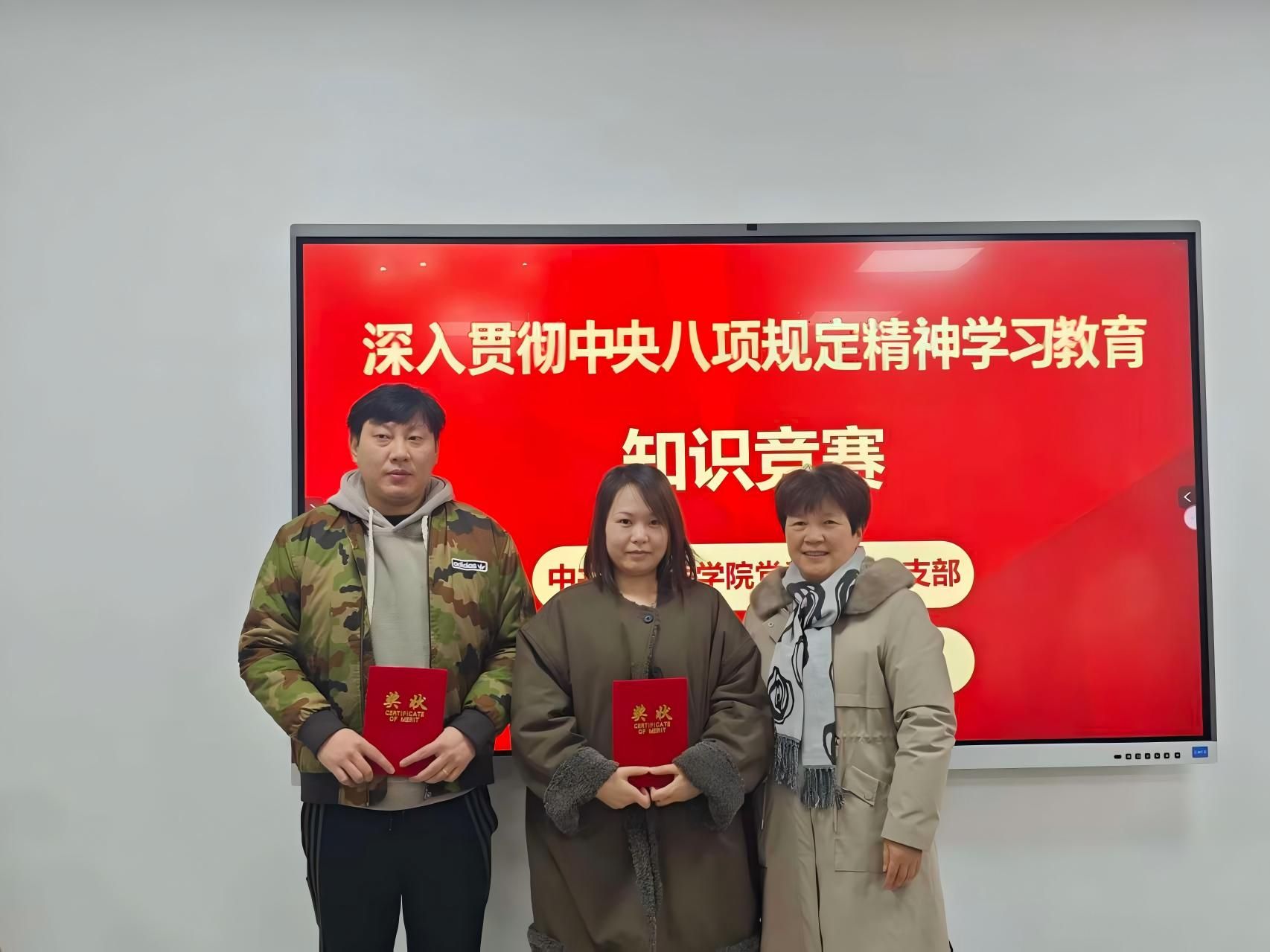 学院党委班子成员为获奖党员颁发荣誉证书,并勉励全体党员以此次竞赛为契机,进一步深化理论学习、筑牢思想根基,时刻绷紧纪律规矩之弦,自觉将中央八项规定精神内化于心、外化于行。