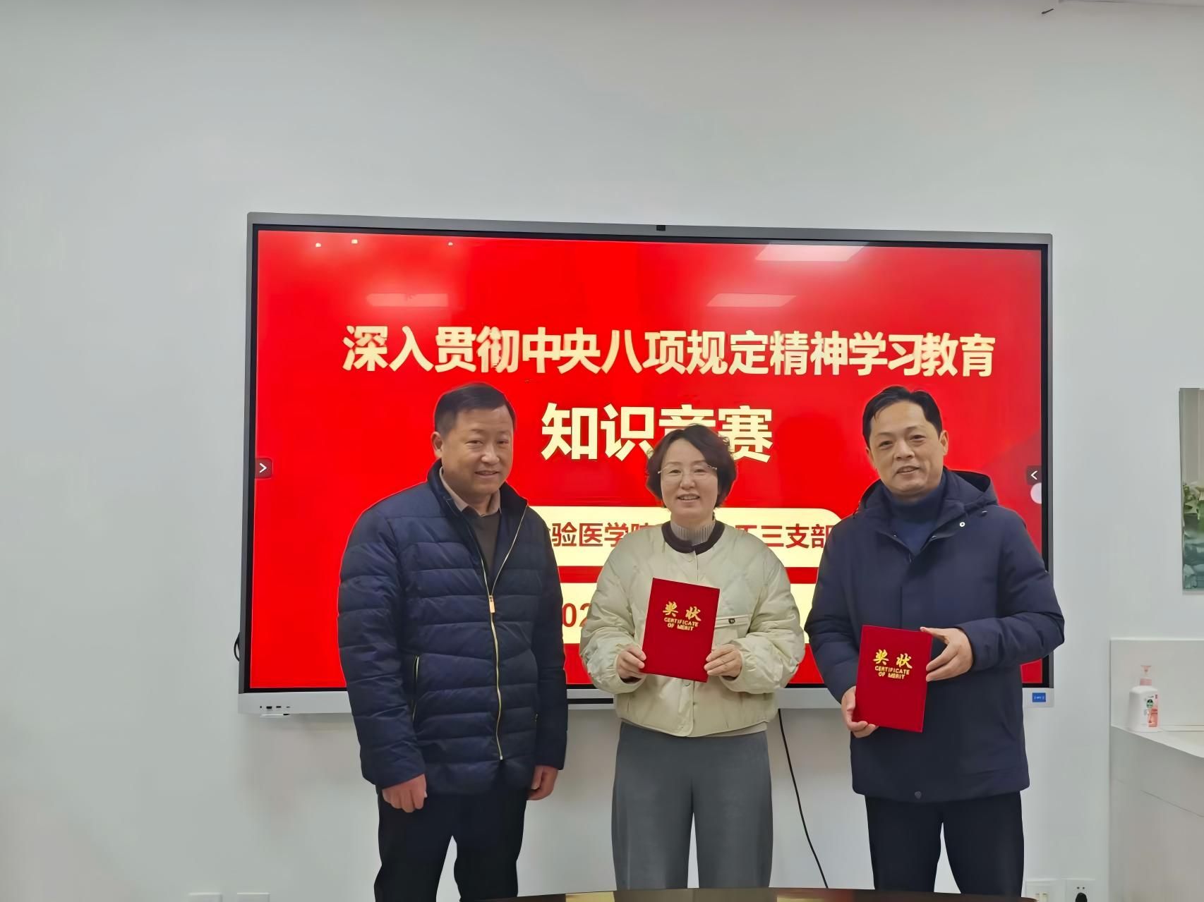 为深入贯彻中央八项规定精神学习教育走深走实,持续强化党员纪律作风建设,1 月 12 日下午,检验医学院教工第三党支部组织全体党员开展深入贯彻中央八项规定精神学习教育知识竞赛活动。
